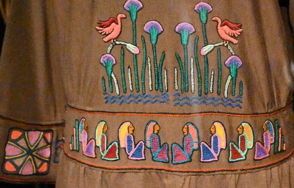 Close-up of a "Tut Mania" dress ... apparently the colour is "mummy brown!
