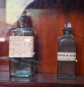 Medicine cabinet - and some of the bottles ... Nitrate of Silver, there was also nitrate of mercury!