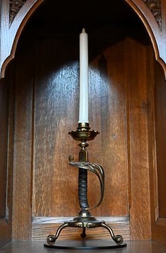 Their coat of arms is crossed rapiers, so they had these candlestcks designed.