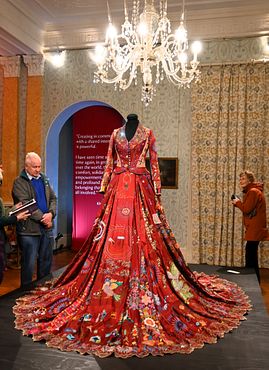 Yesterday Christine and I went to Killerton, our local National Trust Property. It is not far from a bus route, so although I am really paying for it today I was able to get there - to see the Christmas Decorations. However their big display was Red Dress Project It's not something I had heard about, but in hearing the DVD nearby, and looking at the assorted internet links, I have learned about it. Some of the individul pieces are truly spectacular ... and the overall effect is stunning.