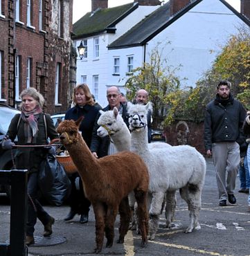 The service at the Cathedral was lovely ... and yes the Alpacas (that I called llamas last week) enjoyed their promotion to camels ... they walked up and through the cathedral while we were all singing the carol "We theree Kings" ... and then back around as we finished with "Hark The Herald Angels Sing" ... here they are arriving for their starring role, so this is before they had their Royal costumes on.