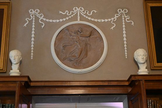 As the house was pretty empty, the room guides were quite chatty ... and explained this painting. This is the family who did a lot of the building work, a love match, although also money-match, as she came from a rich family. (The cross in the garden was built to remember him) They took their faith seriously and on Wednesdays they used to have the vicar come over for a Bible reading time ... and this is the picture. However, what was also pointed out was the "ghost" ... it is a self-portrait of the artist (who didn't actually sign the painting because of this!) ... he is between the lady of the house, and the vicar.